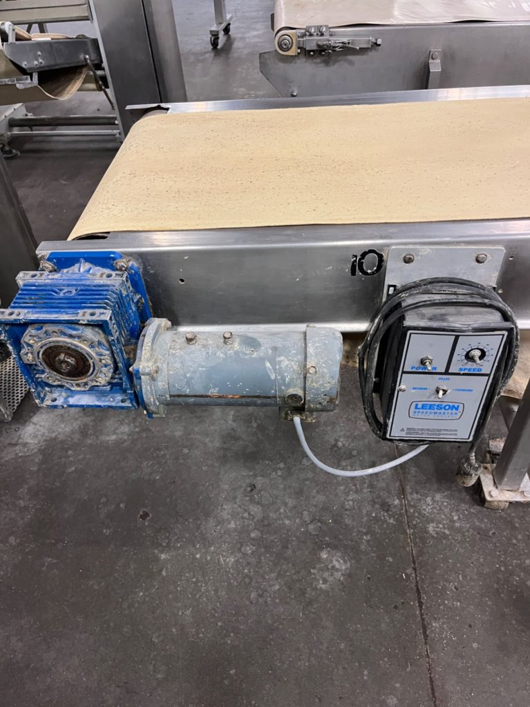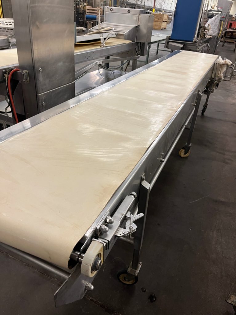 - Sheeter & Booker Line: Cim International 4-Station Sheeter, (2) Flour Stations, Sanitary Belt Conveyor