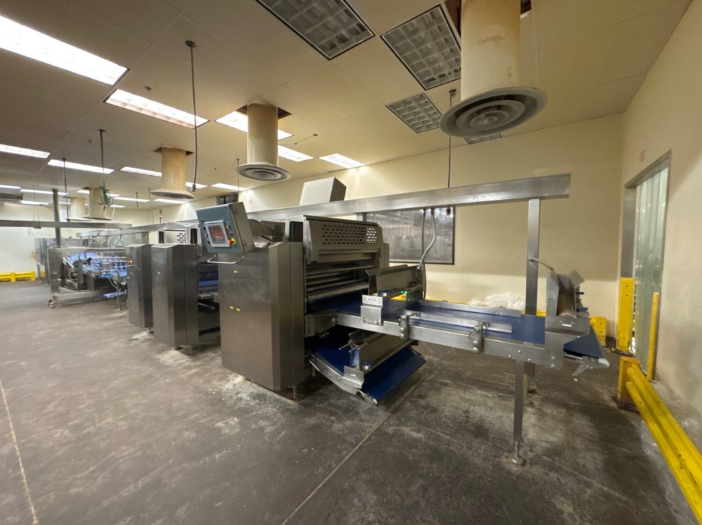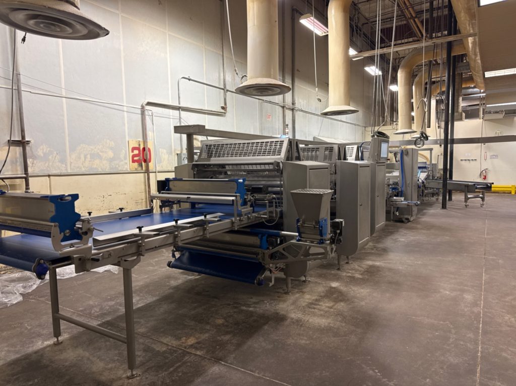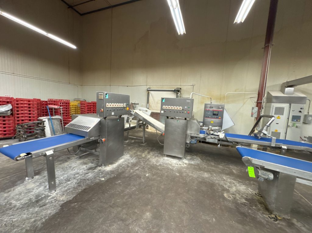 - Rondo Doge Sheeting Line: Rondo Doge Laminazione Sheeter (New 2002), Rondo Doge Multi-Roller, Rondo Doge Cross-Roller, (2) Rondo Doge Round Rollers, 6-Lane Cutter, 4-Head Depositor, Multi-Roller, Sanitary Belt Conveyor, 48″X30′, Rademaker Radini Guillotine, 3-Head Sprayer, Depositor (New 2023), Radini Compact Tray Loader,